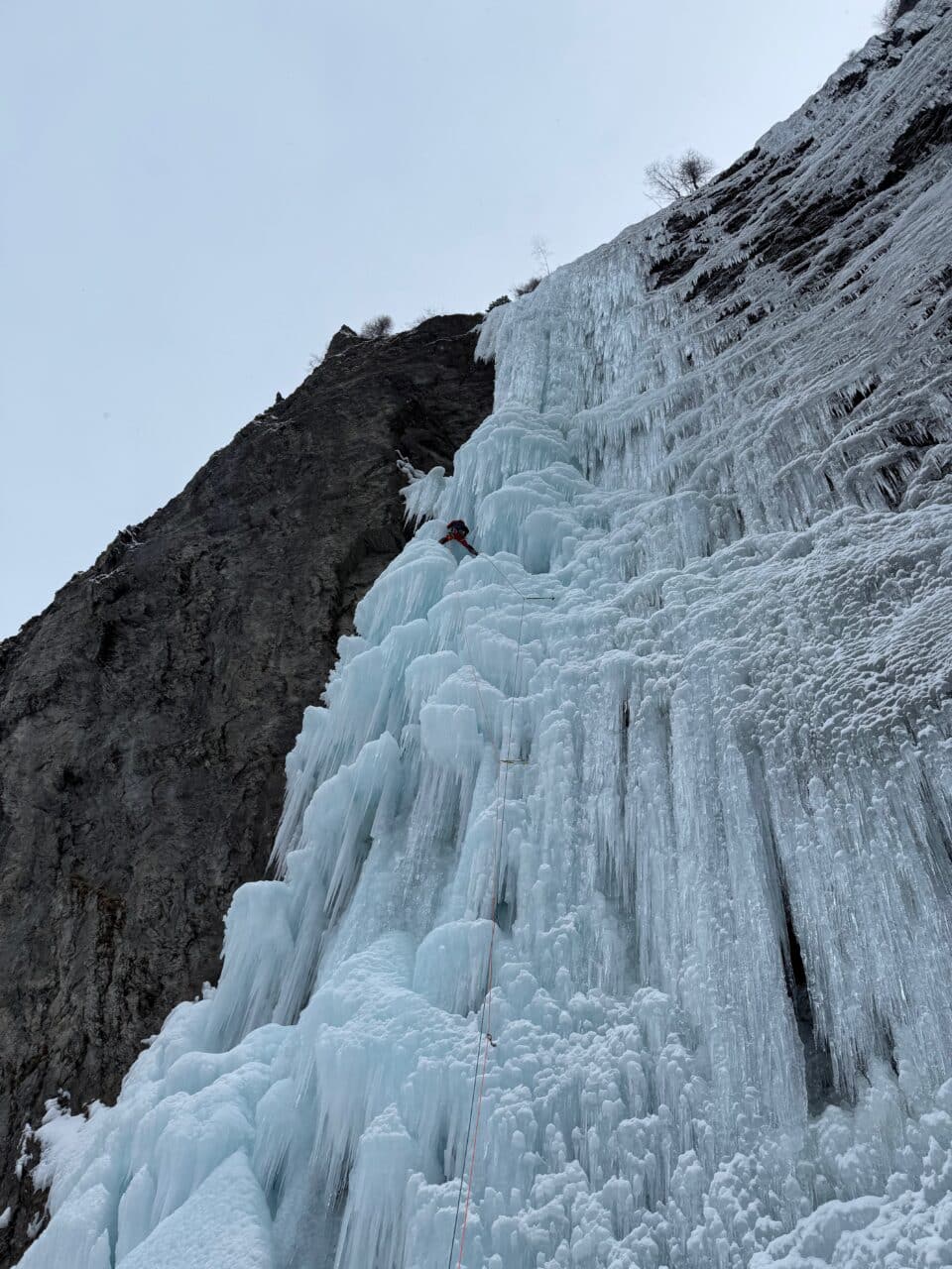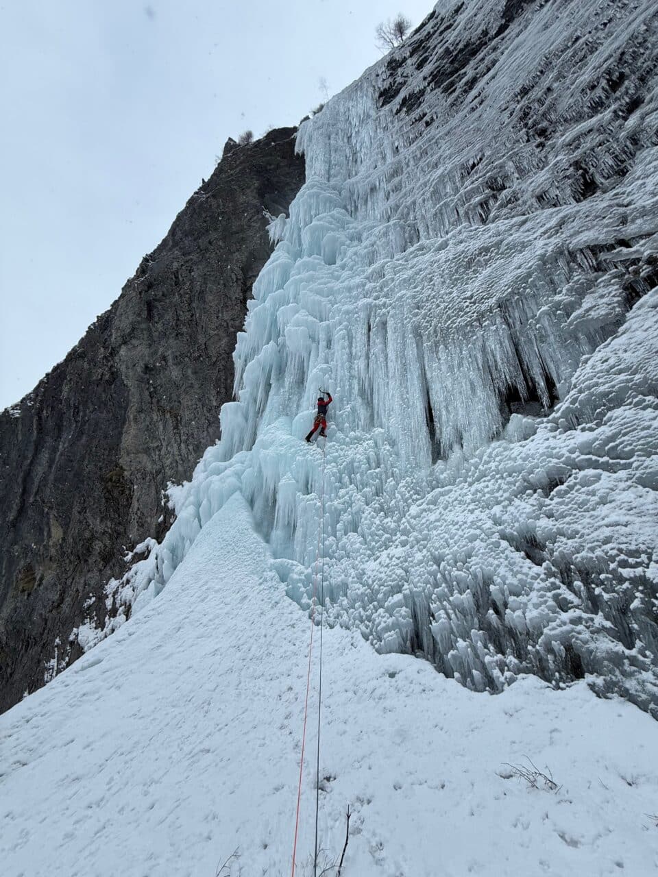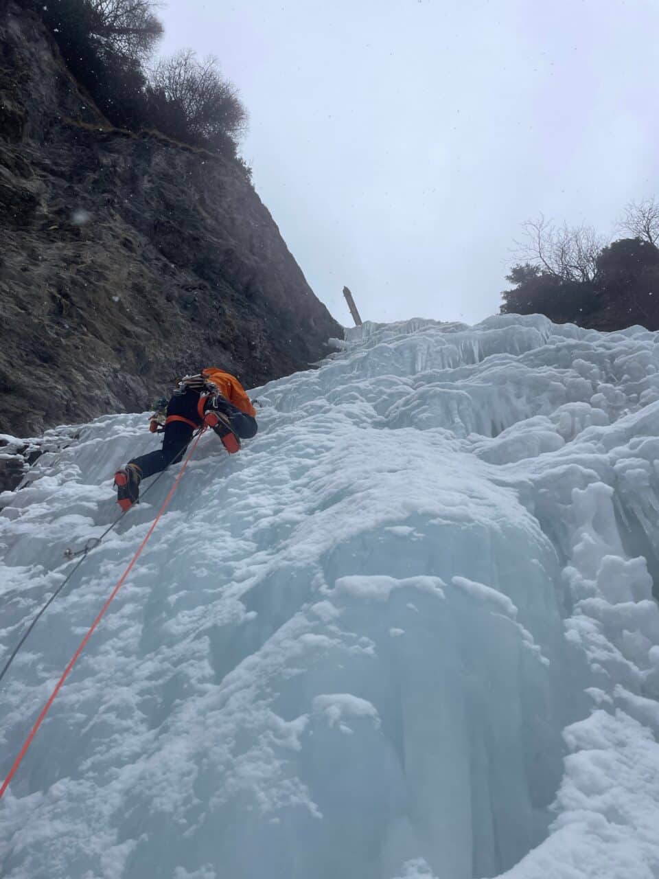 En rive droite on trouve quelques belles cascades de glace, notamment Kathedrale que nous gravirons le premier jour, avant que la neige ne nous rejoignent là-bas aussi!