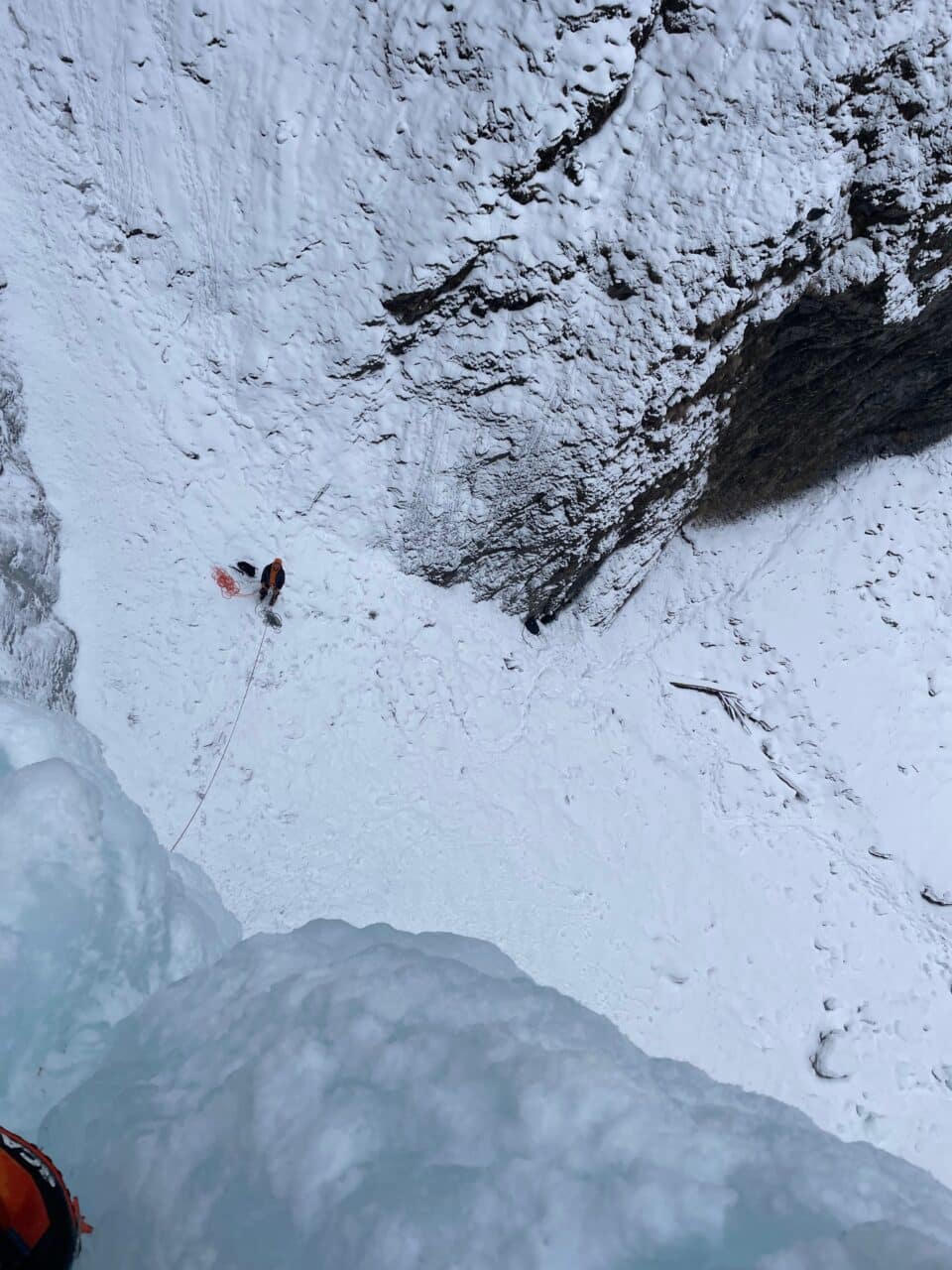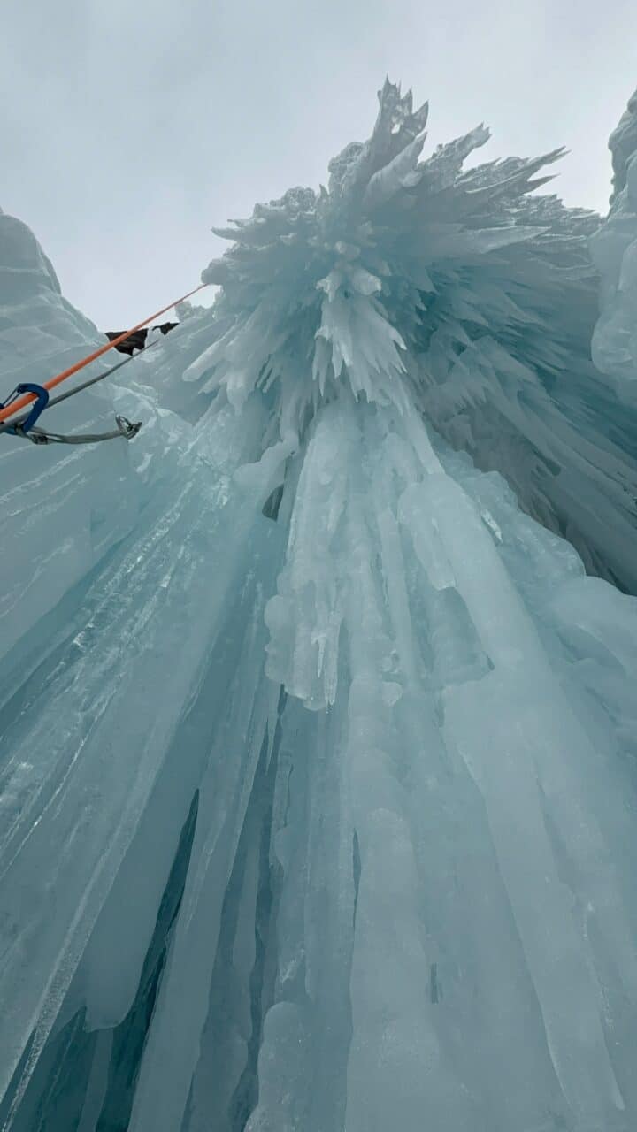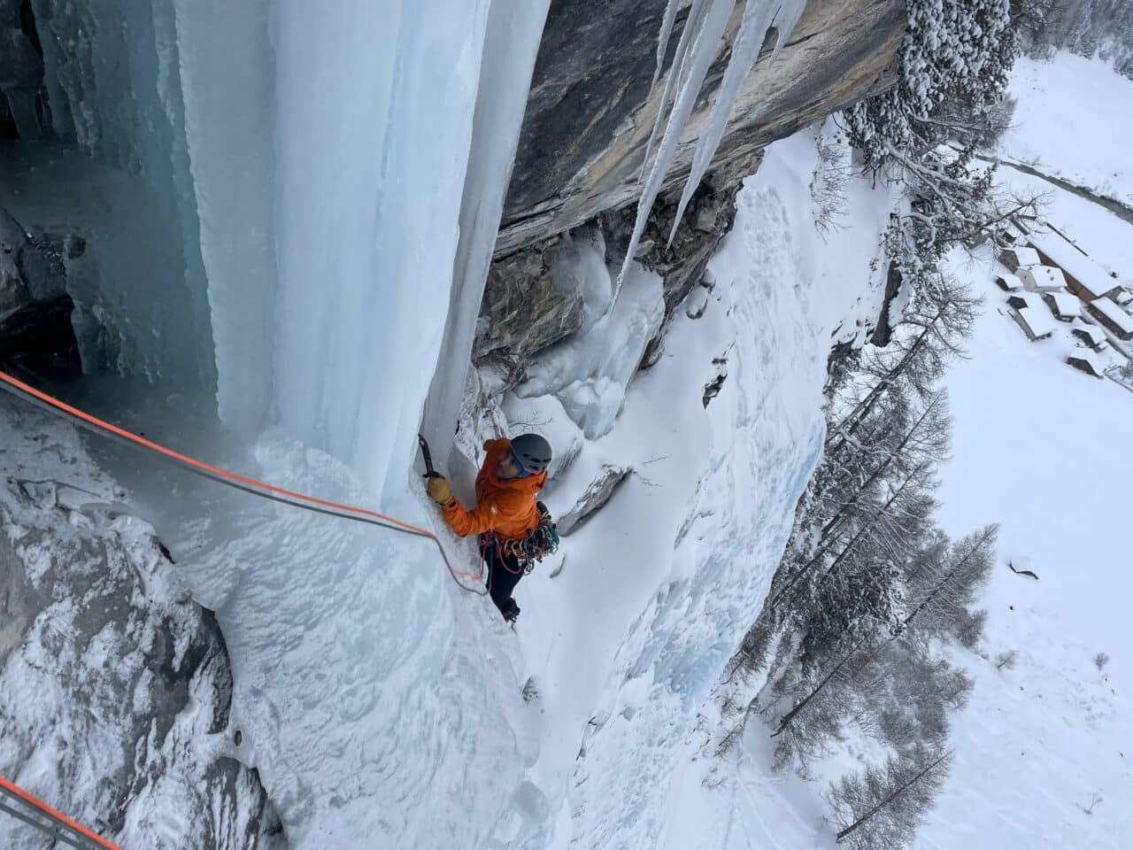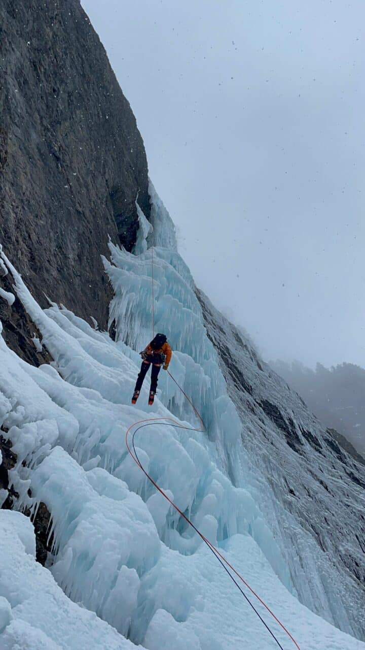 En rive droite on trouve quelques belles cascades de glace, notamment Kathedrale que nous gravirons le premier jour, avant que la neige ne nous rejoignent là-bas aussi!