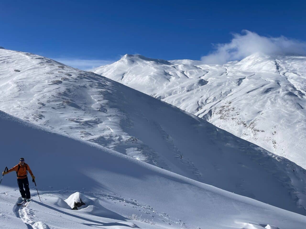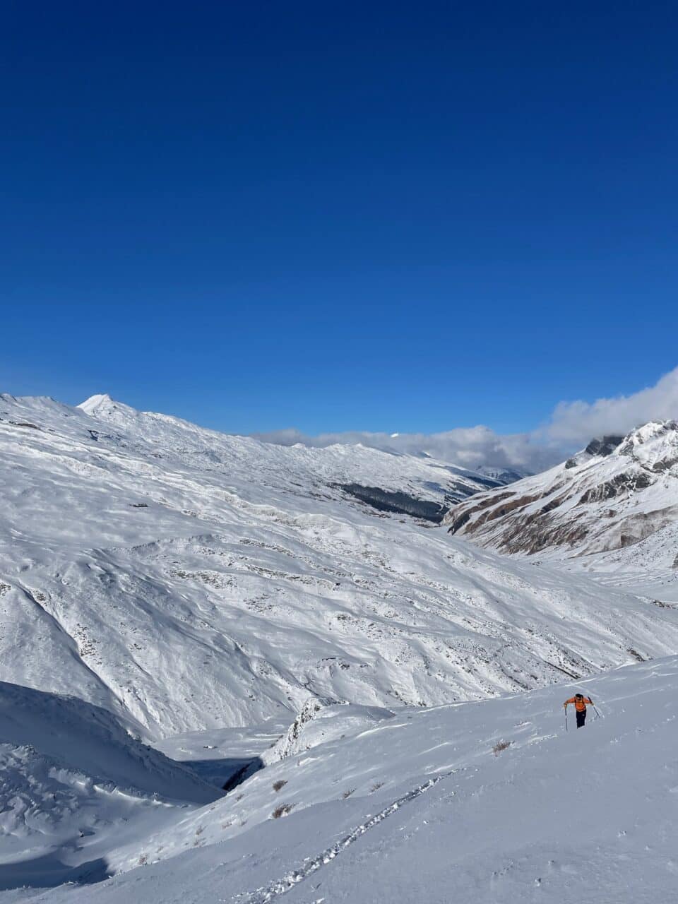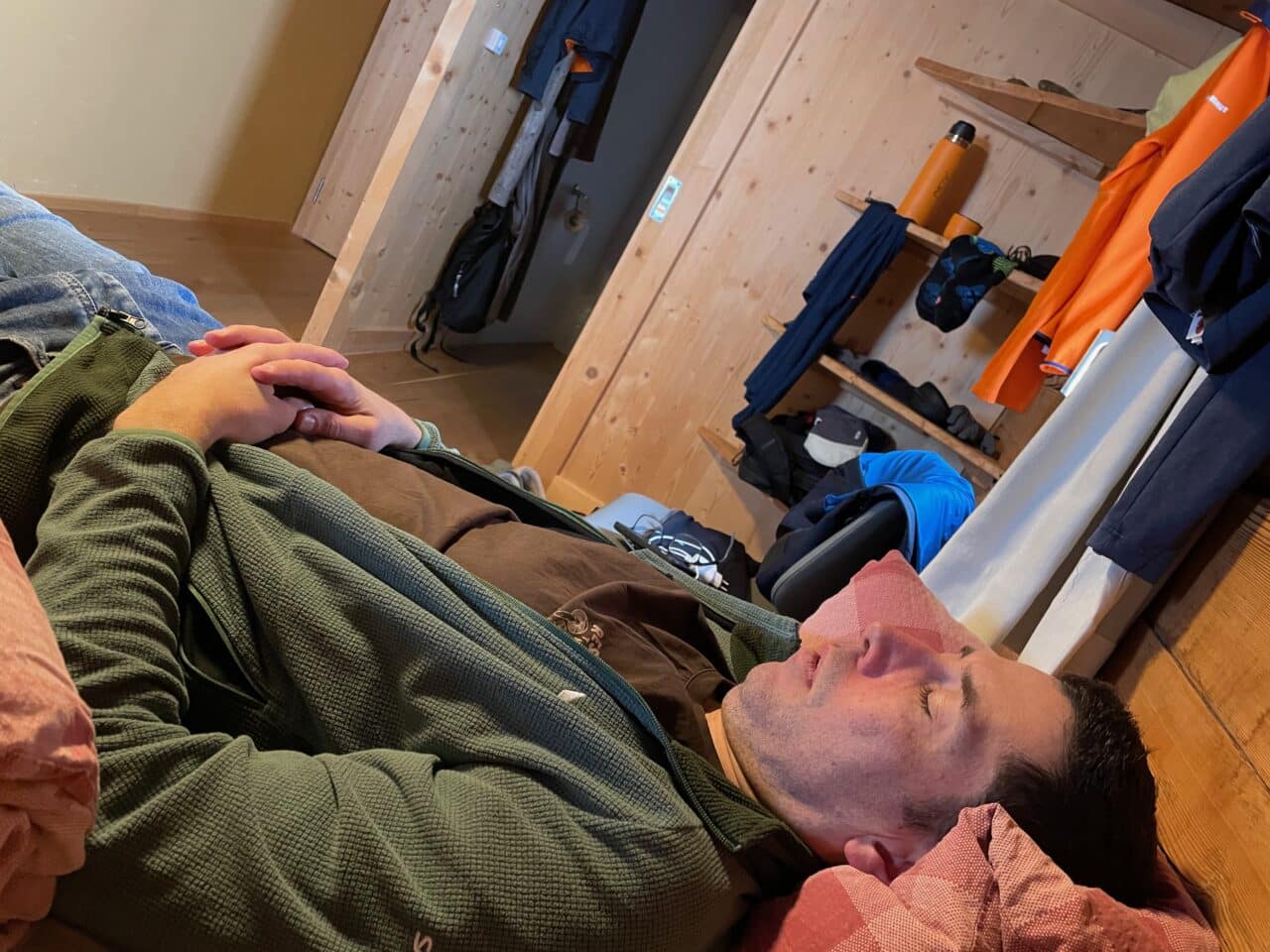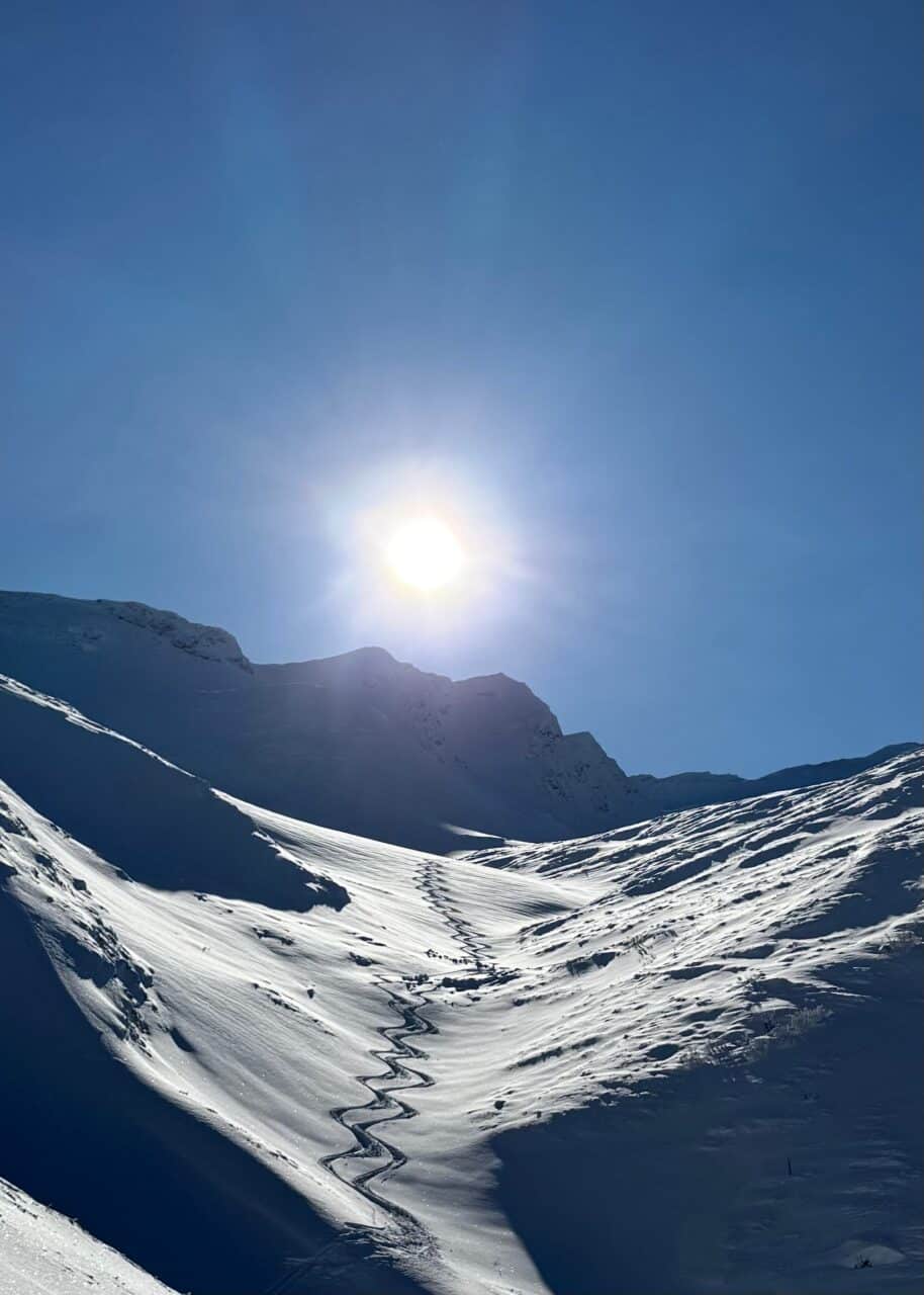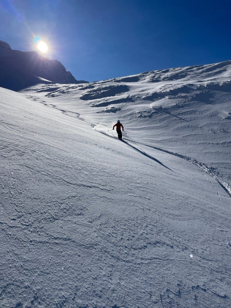Le temps est radieux, on en profite pour faire une sortie à ski au soleil. Finalement cet incident nous a permit de profiter de la bonne neige au soleil, bien joué Giuliano!!